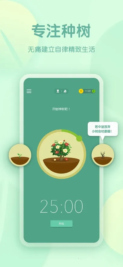 3. 利用使命感和成就感正向增强,有力帮助用户远离手机成瘾,培养专注习惯。