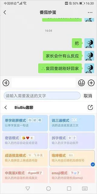 3、接着显示如下图所示页面就代表已经完成了biubiu键盘的设置,并开启了biubiu聊天神器的功能了