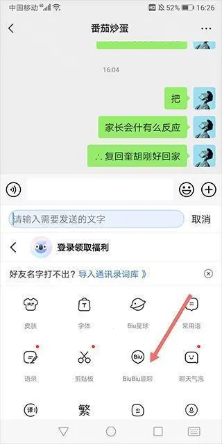 1、用户只需要在手机上安装好应用后,就可以在微信或qq聊天中,点击聊天输入框就会弹出讯飞输入法图标(下图红色箭头所指)