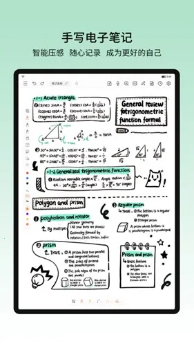 4. 智能高效:语音速记功能可实时将录音转为文字笔记,支持中英双语及方言识别,并自动生成时间戳,便于后期校对;集成直尺、圆规等虚拟绘图工具,支持图形自动识别,书写停留时自动修正为规整图形,提升绘图效率。