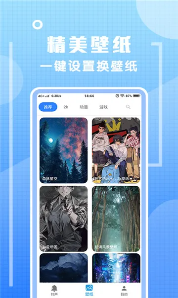 4. 不仅有铃声,还有海量高清无水印壁纸,分类众多,风格多样,可随心选择,让手机更个性化。