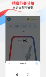 它的亮点也不少,滑轮式控制节拍频率,手指滑动轻松调;多种音色支持,适配不同音乐风格;开启闪光灯或震动模式,在各种环境都能感受节奏脉动。界面简单精美又人性化,易上手。优势明显,节奏控制稳定可靠,音色丰富获好评,老少皆宜。不管是音乐老师教学、乐器练习,还是歌手唱歌练习等,它都能完美胜任,比传统节拍器好用太多,赶紧来试试吧!