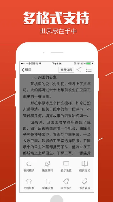 支持多种阅读格式,如TXT、UMD、PDF等,阅读方式不单调,带来舒适阅读体验。
