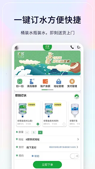 珍茗好生活5.0.0正式版下载怎么样?它是一款实用的送水预订平台。在这里,你能体验优质水源的送水服务。其优势显著,严格筛选合作水站,每批次水质检测报告可查,确保饮用水安全可靠。支持在线预约和智能排单,配送进度实时可查,操作流程简单高效。软件特色丰富,采用金融级防伪技术,桶身二维码与瓶盖安全码双重绑定,杜绝假冒。全流程数字化溯源,从生产到配送全程云端追踪。还有本地化便捷服务,专注昆明地区桶装水配送。如果你有日常用水送水需求,珍茗好生活5.0.0正式版值得下载一试,能为你提供省心安心的饮水服务。