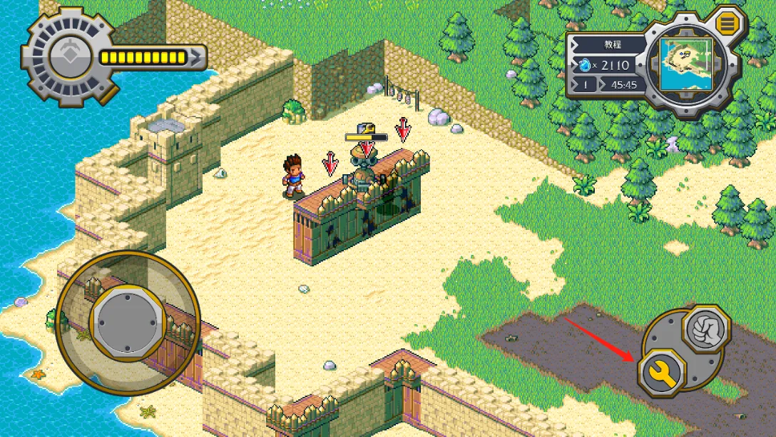 便捷操作方式:正式开始后左边摇杆控制角色移动,右边按钮和NPC互动。战斗时点击左下方切换放置建筑,点击对应建筑后再点绿色对勾按钮放置。放好建筑后点击左上角红色按钮开始战斗,可操控角色上阵或看炮塔消灭敌人。