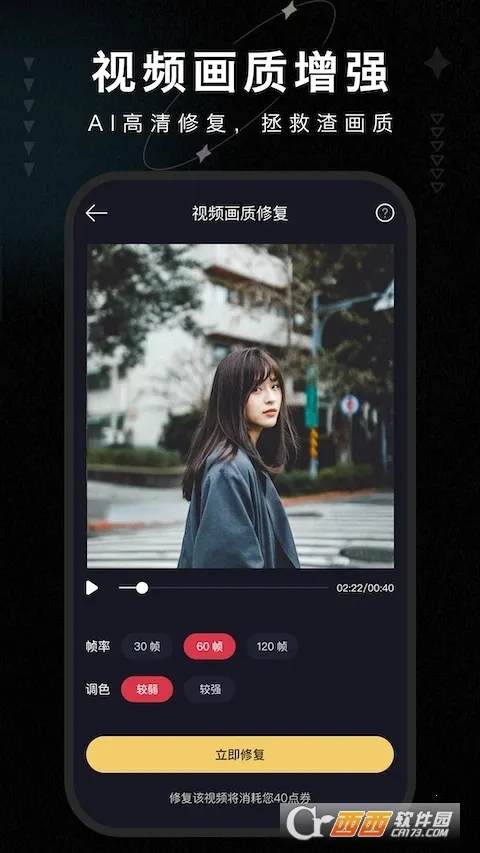 画质修复大师挺好用的!它能解决很多照片画质方面的问题。依托先进的AI照片识别技术,能快速把老旧模糊破损的照片修复得清晰如初,让珍贵回忆清晰再现。还能给黑白照片自动添加自然色彩,使其变得色彩斑斓。对于修图小白,它简化了修图滤镜裁剪等操作,还有详细教程,初次接触也能快速上手。它具备翻拍复原、颜色恢复等多种修图功能,能满足爱美人士各种需求。通过AI大模型算法,自动识别照片内容智能翻拍。针对残缺褪色照片,能恢复其原本光彩。软件亮点也不少,有多种自拍处理工具,内置海量精选素材,多种预设滤镜。优势在于内置多种绘画工具,拍照无需Root权限就能调节游戏画质,一键提升照片清晰度,初学者也能快速上手享受修图乐趣,而且所有功能免费使用,几步操作就能让照片视频变清晰,自拍照更绚丽。