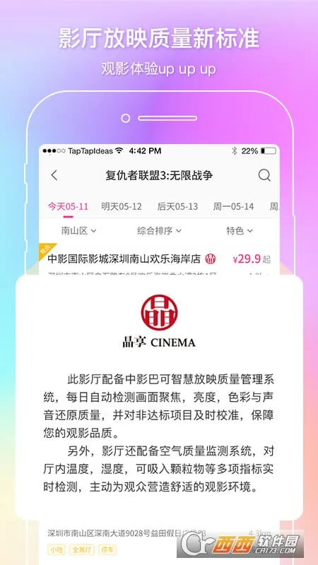 影院超齐全:整合各个城市的电影放映影院,可购买所有影院的电影票。