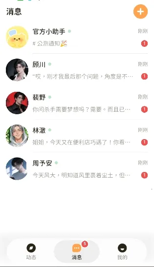 1、在消息界面中点击+
