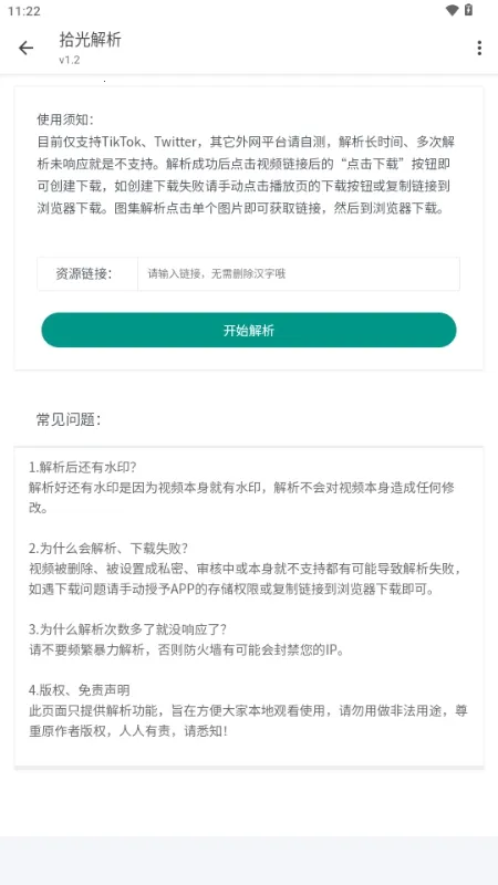 拾光解析 2026 是一款为用户打造的视频解析小工具,能快速导出无水印视频或封面,适配多种场景。覆盖多平台,一键去水印,输出保留清晰度,界面简洁,操作便捷,解析高效,安卓兼容性强,使用需注意版权。