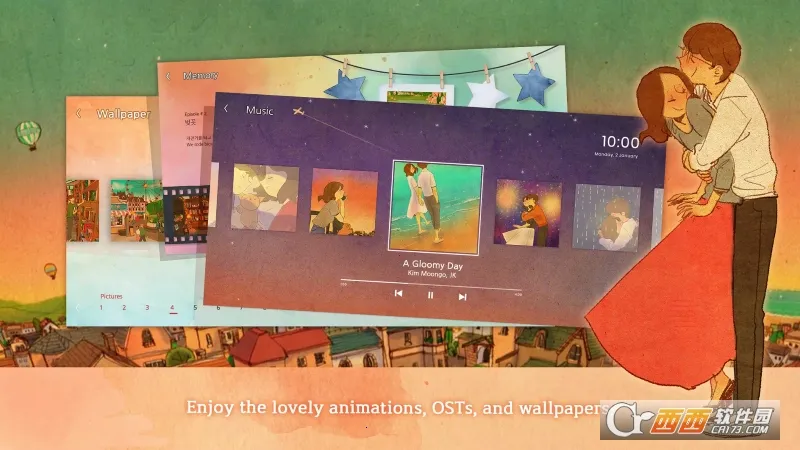 采用手绘风格,每一幅画面均由专业画师精雕细琢,细节丰富到可直接设为壁纸。搭配柔和舒缓的背景音乐,营造出沉浸式的浪漫氛围。