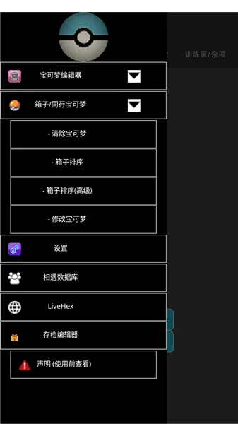 用它可以自由定制游戏内容,创造独特冒险体验。比如调整队伍配置、修改稀有度,探索隐藏设定等。还支持数据导入导出,方便分享和备份。使用时,下载后打开软件就能直接修改,宝可梦数值也能自定义,点击左上角三条杠还有更多功能。