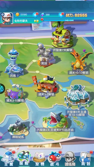 养成体系多样自由,多样化的宝可梦养成体系,让玩家能依据喜好自由培养宝可梦战队。