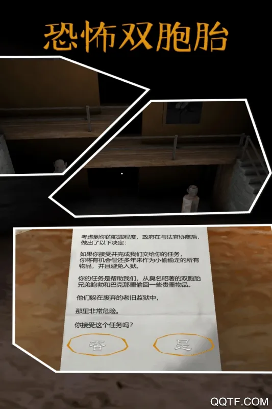 恐怖双胞胎2025官方正版是一款恐怖冒险逃脱手游。画面惊悚,音效恐怖,故事精彩。玩家要完成挑战任务、收集线索,操作需一定脑力与反应力,能带来沉浸式恐怖体验,12小时可通关。