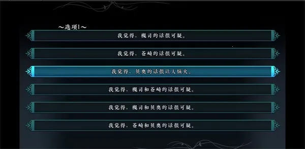 为了节约大家的时间,还是建议先通关一遍HE,以下是达成HE结局的A~Z各选项的选择:(如果你要节约通关DE/BE的时间,建议先阅读一下后文的攻略,记一下存档点)