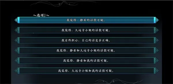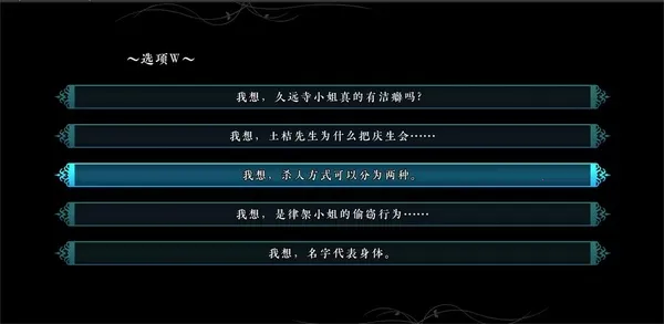4.如果是要获得白金奖杯【名侦探久万梨】的读者,根据其他攻略,貌似需要在M、S、V之后多存三次档,通过N、T、W三个选项的错选(加上前面(3)提到的6个,一共是9个结局)完成所有DE/BE。其实L和N、R和T、U和W打出的结局几乎完全一致,可能是因为细微的文字差异便不能认定为“同一”结局吧。