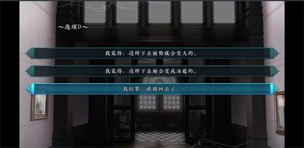 2.在T项及之前作出错误选择的结局为DEAD END,在U项及之后作出错误选项的结局为BAD END,经过本人反复比对,大致的结局类型有4种DE,2种BE