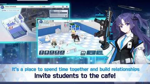在玩法上,玩家可招募培养众多角色,每个角色都有独特剧情。能自由搭配队伍阵容挑战关卡副本,战斗采用半即时策略操作,有多种角色特性可供考量。还能与学生培养羁绊,解锁专属剧情和动画。