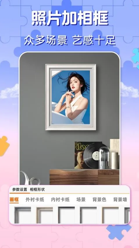 内置丰富艺术相框、背景样式及文字贴纸素材,可自由编辑文字、添加滤镜,轻松制作高级质感作品。