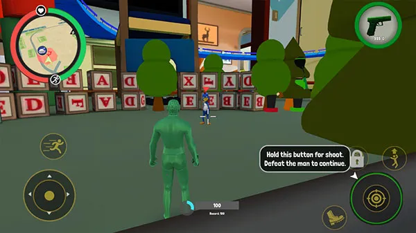 玩法上,下载安装后,通过左下角轮盘控制角色移动,滑动屏幕调视角,瞄准敌人点击右下角开火。能驾驶各种玩具载具,用左右键和右下角按钮控制。右上角可切换动作或武器,还能在商城买防具武器。场景中有 NPC、玩家和神奇道具。