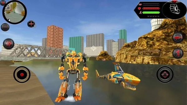 支持在战斗移动中流畅切换跑车与机器人形态,跑车形态高速冲撞,机器人形态近战射击,组合多样战斗策略,如狭窄街道灵活穿梭接近敌人后瞬间变形致命一击。