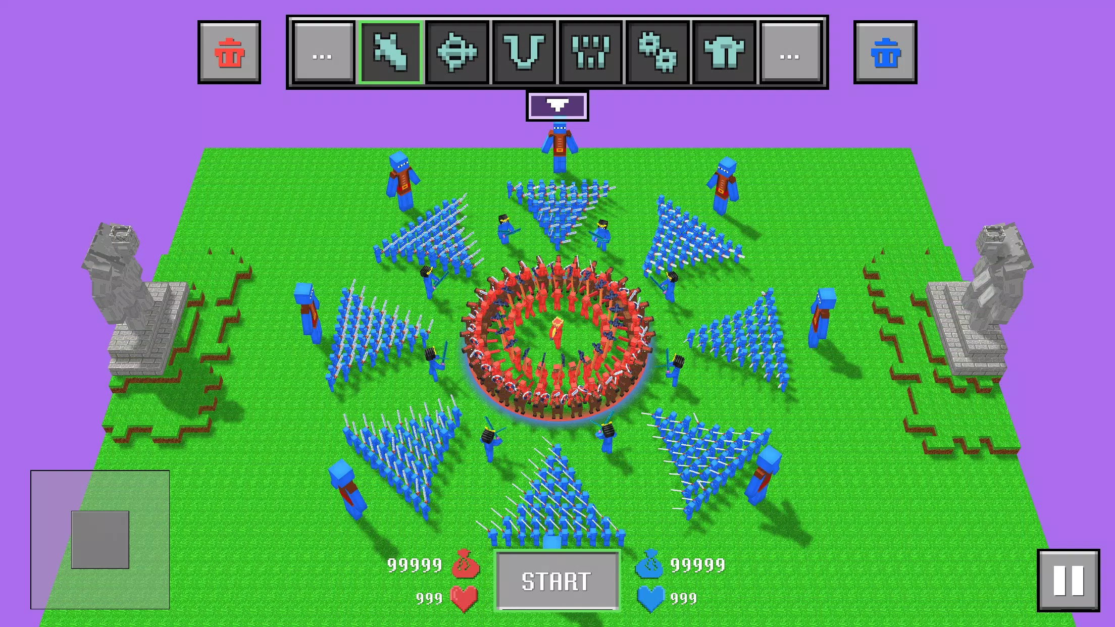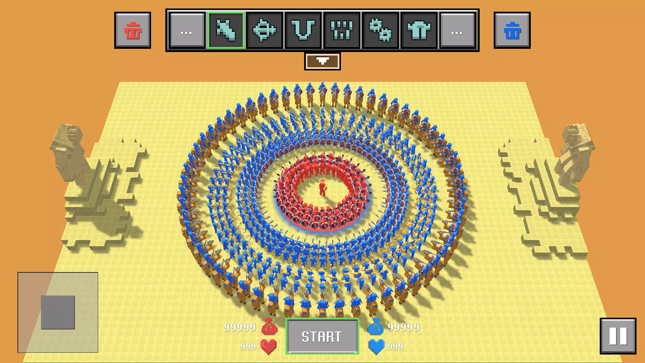 《布娃娃战争模拟器》是一款基于物理的策略游戏,可创建大规模战术战斗。玩家能成为红蓝块状布娃娃领导者,选择部队并添加。游戏有一堆愚蠢单位、布娃娃物理玩法、多模式,还有智能AI部队、华丽3D艺术及很棒的声音音乐。
