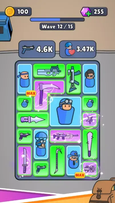 1. 创新策略玩法:融合背包管理与自动战斗,玩家通过智慧收纳构建军队,在有限网格内科学放置士兵并连接武器,打造无敌阵型,体验整理即战术的独特魅力。