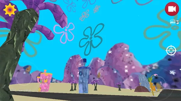 游戏画面简约,完美还原动画片中的比奇堡各种建筑,搭配轻快音乐,营造轻松游玩氛围。玩法上,进入游戏出生在蟹堡王门口,通过左侧轮盘控制移动,右侧控制视角,还能自由切换第一、三人称视角。目标是在海底世界寻找并收集更多蟹黄堡,同时会遇到各种海底事件和神秘生物。