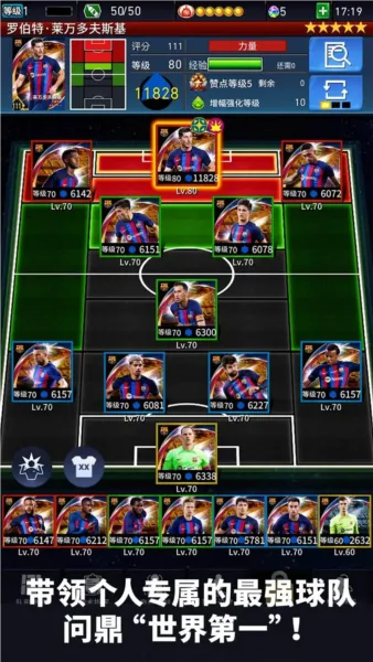 实时对战:能与对手随时随地进行实时对战,可通过排名赛挑战未知强敌,也能与好友进行友谊赛,还有11人战模式,11名玩家挑选最强球员组成梦幻阵容实时协力战,合力击败强敌。
