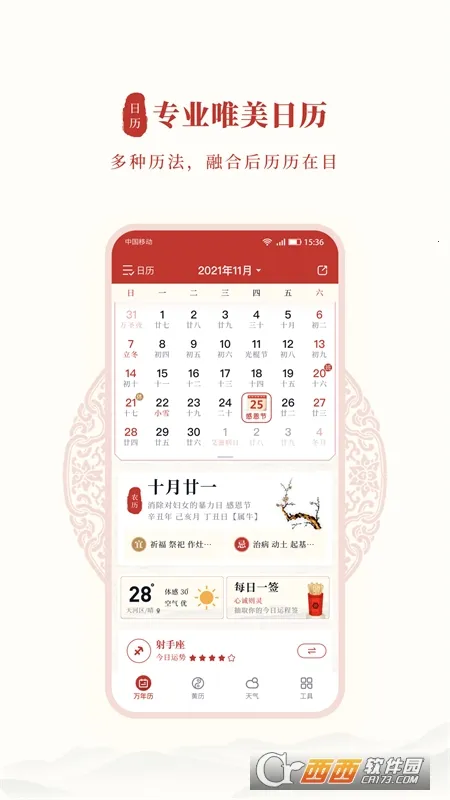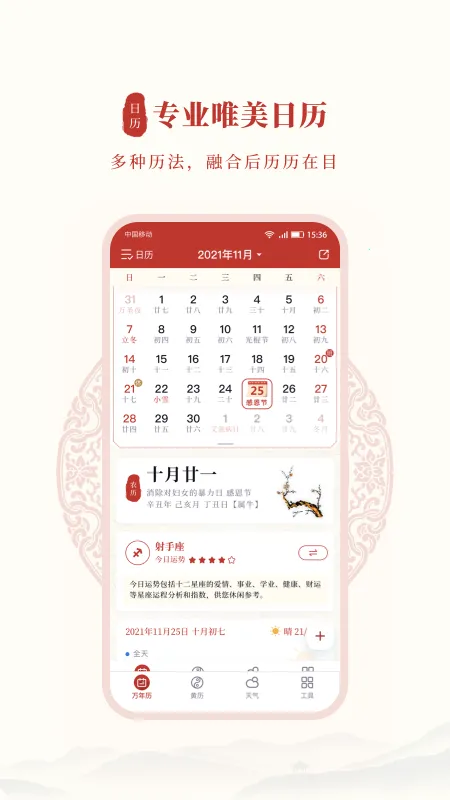 3专业全面精准的日历查询功能,多种历法融合一体,简单易用,掌握每一个重要的日子。