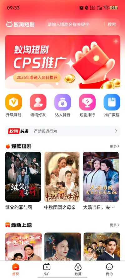 蚁淘短剧是个能让咱赚钱的好软件。它整合了AI智能系统和万部正版短剧资源,给咱提供了零门槛创收的办法。咱能通过智能生成推广链接,一键分享到微信、抖音、快手等平台获取流量,观众付费咱就能变现。而且AI算法每天推送高转化剧目,还能实时追踪收益数据,分佣比例透明,收益秒到账。这软件里有海量短剧资源,涵盖各种题材,每集1 - 5分钟,适合利用碎片时间看。它支持高清画质播放,无广告干扰,观看体验超棒。还能基于咱的观看历史和搜索记录精准推送短剧,减少无效浏览时间。另外,它有新手教程和推广素材库,学生、宝妈、副业党都能快速上手,利用碎片时间轻松赚钱,真的很方便。