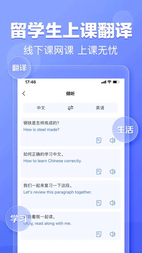 专业高效的工作翻译功能,为职场人士提供语音和文本翻译服务,助力工作沟通,提升效率。