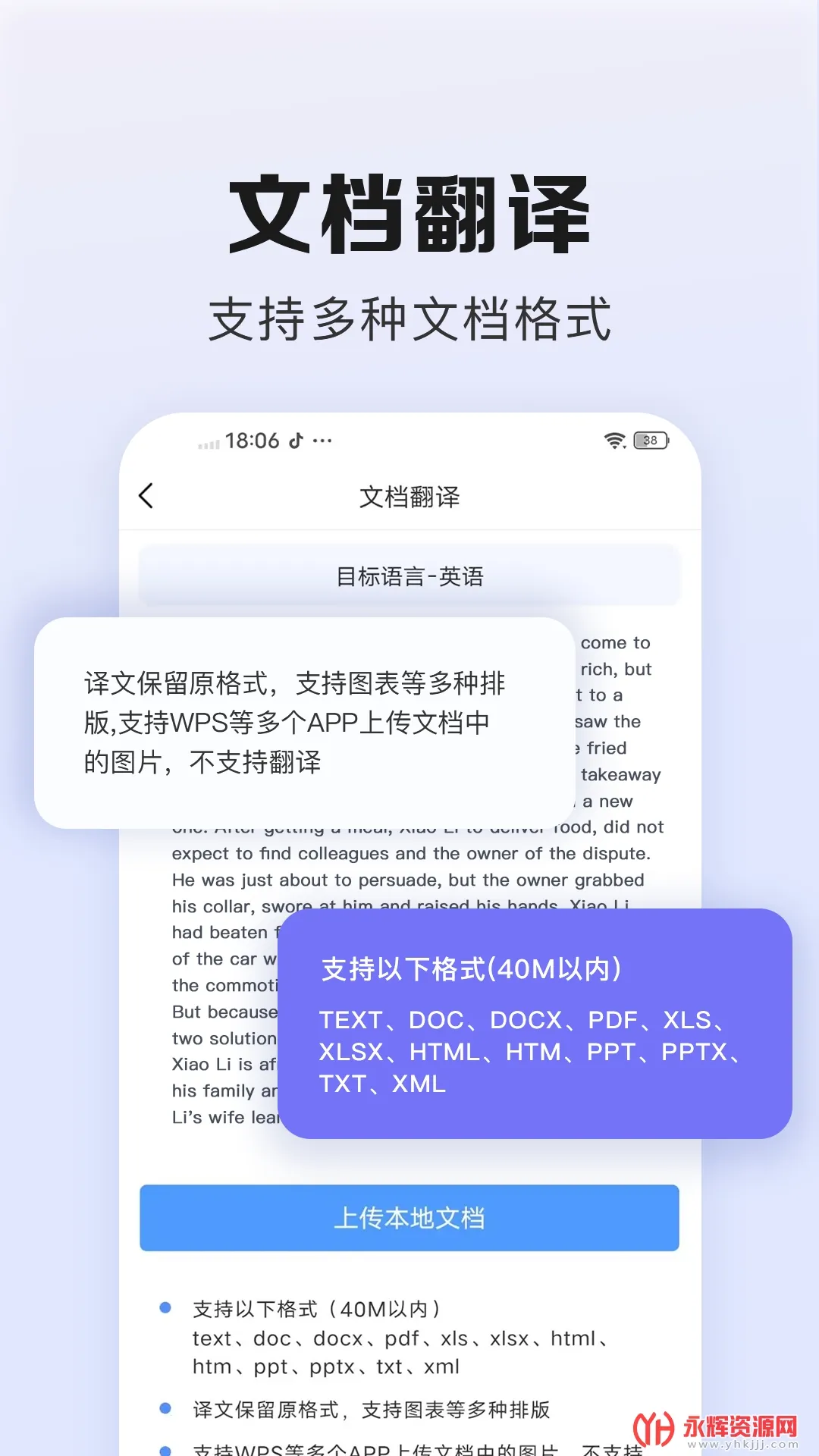文档翻译高效:能导入pdf、doc、docx等文档进行翻译。