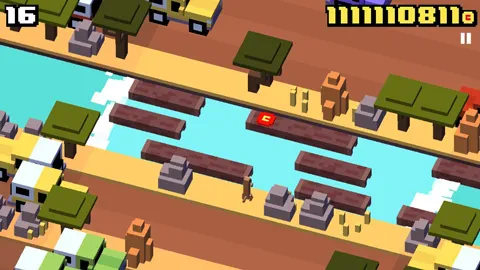 在跳跃的过程中一定要躲避来往的车辆,被车撞倒或者撞向车都会导致游戏结束哦,当遇到火车道的时候,一定要注意指示灯,指示灯亮起的时候,切记不要穿越火车道,因为稍后会有火车快速通过躲不开的哦,在碰到小河的时候,千万不要跳进水里哦一样会导致游戏结束的,踩在水中的荷叶上,或者飘动的木头上都可以跨过小河,如果长时间站着不动的话,如果角色碰到了屏幕的边缘,那就会飞来一只老鹰把你叼走哦,所以千万要快速向前,如果发现路上有黄色的方块 C,一定要踩上去呢!这是金币,收集一定的金币可以用来玩扭蛋机,扭蛋机可以随机获得一个可爱的新角色,看看这些萌萌哒的角色,是不是心动了呢?如果特别喜欢某个角色,也可以直接付费购买。