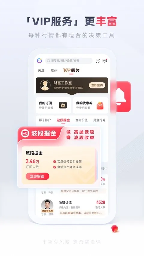 3. **财富管理精准**:在不同时间和行情背景下,为不同经验水平的投资者智能匹配专属投资理财服务,实现财富精准精细化管理。让投资更具针对性和科学性。