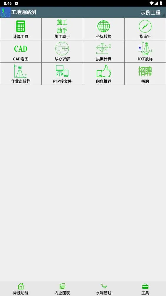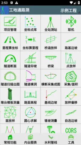 3. 功能丰富:集成路线坐标高程计算、放样坐标里程反算、桥涵隧道断面测量等功能,覆盖公路铁路市政等施工场景。