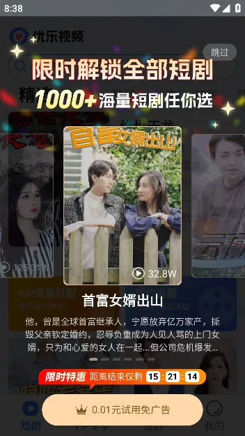 优乐视频2026最新版本是集海量高清短剧与全品类影视资源于一体的综合影音平台。以智能推荐等为核心,覆盖多元题材,支持离线缓存、多终端登录,界面简洁,功能全面,能满足不同用户观影需求。