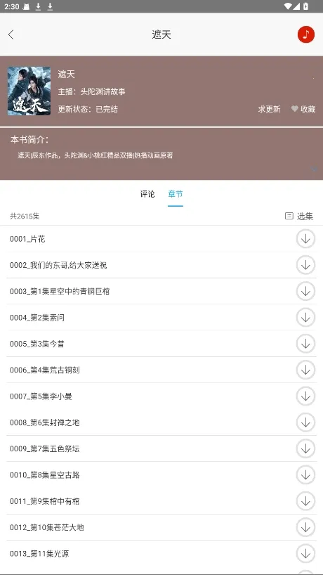 离线下载方便随心,支持批量选集下载,用户可在有网络时将喜欢的内容下载至本地,在无网络环境下也能尽情听书。