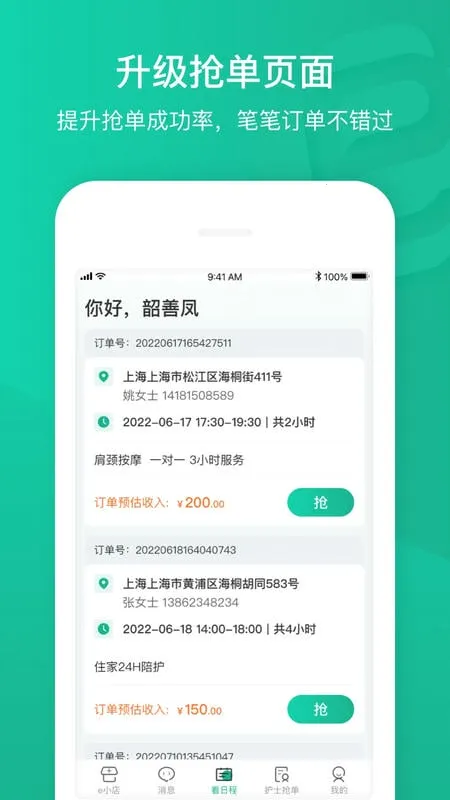 2. 可自由接单,依据自身工作安排,选择不同服务时间的订单,我的工作我做主。