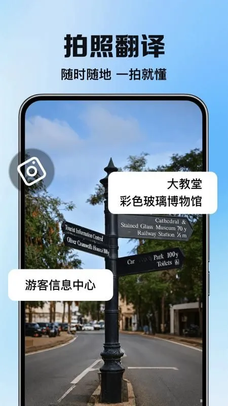 4. 支持拍照翻译系统,能翻译路边标识牌内容。