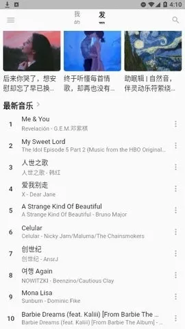 详尽的歌曲和专辑栏目,能满足用户对音乐的各种需求,新上线歌曲也能在此收听。