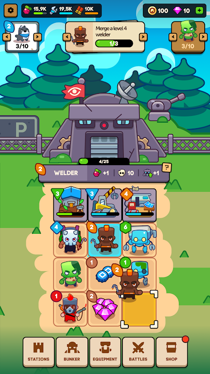《末日避难所:合成生存》是一款独具特色的末日题材游戏。它将玩家带入一个僵尸肆虐、社会秩序崩塌的末日世界,玩家要肩负起重建庇护所、组织防御并带领团队求生的使命。