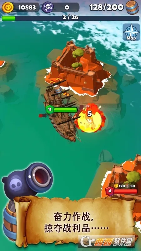 2、经营升级乐趣:抢得战利品后回到藏身处,将资源转化为金币材料,升级强化海盗船,改善灯塔设施扩大海域,合理分配资源让冒险更具策略性。