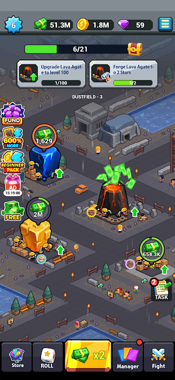 智能经理系统,轻松挂机:引入经理管理机制,招募不同技能的经理自动运营矿山。经理能根据属性配置提升采矿效率,即便玩家离线,也能持续挣钱,实现全天候被动收益。升级经理能力可提高矿工产量和利润,享受真正的放置挂机体验。