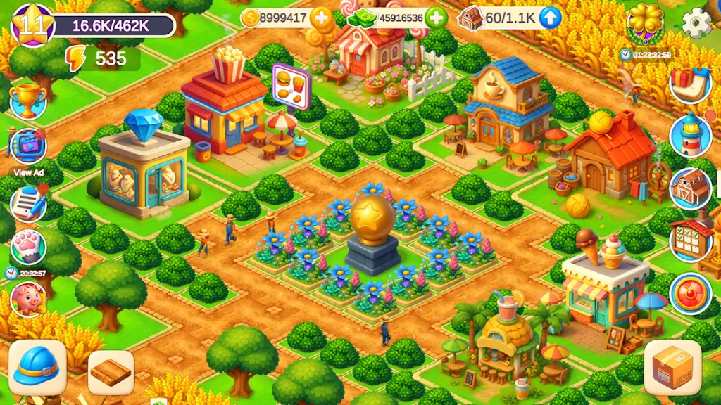 游戏里的建造玩法很吸引人,能自由规划农场布局,用各种风格建筑和装饰品打造个性农庄。多样的作物种植系统,包含常见农作物,要依据季节和市场需求安排种植与收获。动物养殖玩法丰富,照顾奶牛、鸡等动物产出重要经济来源。生产加工体系完善,能把原材料转化为高附加值产品。而且经营节奏轻松愉快,操作简洁,自动化系统避免繁琐操作。经济与市场系统多样,根据市场调整生产。升级选项多,可针对不同环节优化管理。画面温馨,操作简单,适合各年龄层,能让人感受到田园生活美好,是打造梦想农场的不错选择。