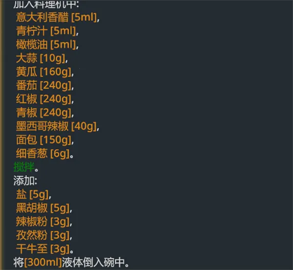 浓西班牙冻汤(Gazpacho)是新手易翻车的标志性考题。按常规菜谱操作往往仅得1星,关键在于突破步骤表思维——这道冷汤的核心评分逻辑,只锁定三个变量:总液体量300ml、基础食材配比翻倍、细香葱精准点缀8g。