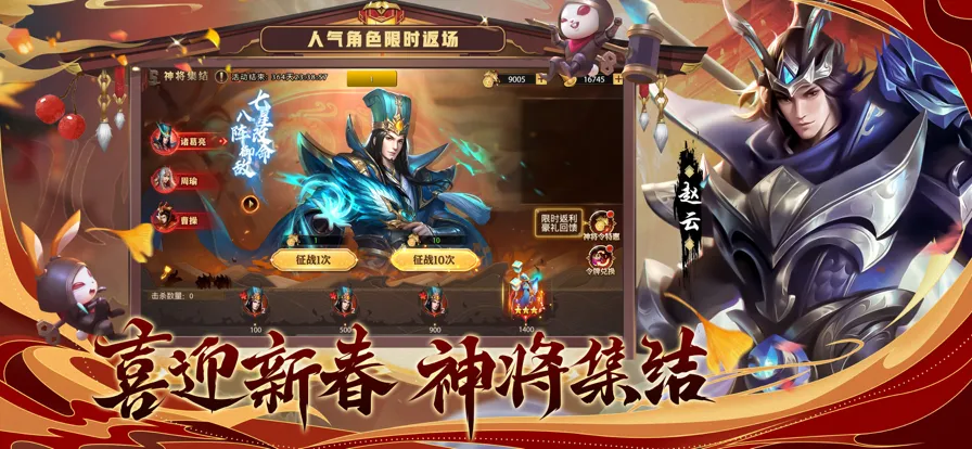 16格布阵颠覆传统,三国知名英豪化身六大类型主将,可根据兵种克制自由变换站位,以奇克敌。