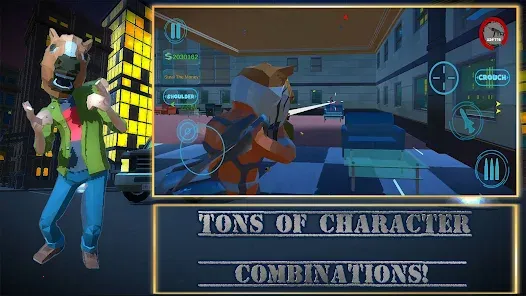 丰富角色面具枪支选择:可在女性和男性角色中挑选心仪的,还有超过40种可定制的角色、面具和枪支,像熊猫、Luchador、马鸡、曲棍球、外星人、狐狸等面具,以及手枪、来福枪、霰弹枪、炸弹、狙击手等枪支供选择。