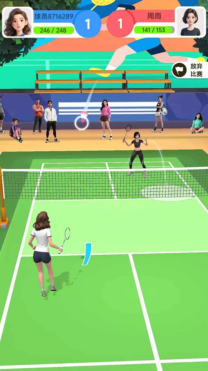 羽毛球对决是竖屏游戏,契合碎片化娱乐。单局1-3分钟,操作极简,新手引导贴心。滑动点击完成击球动作,考验多种能力,还有丰富奖励系统,不同玩家都能畅享击球乐趣,提升技术获成就感。