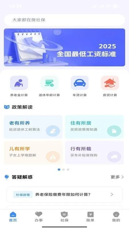 功能丰富:能一键查询社保缴纳情况,还可记录社保账单,满足多样需求,更有大量最新政策资讯及办事指南。