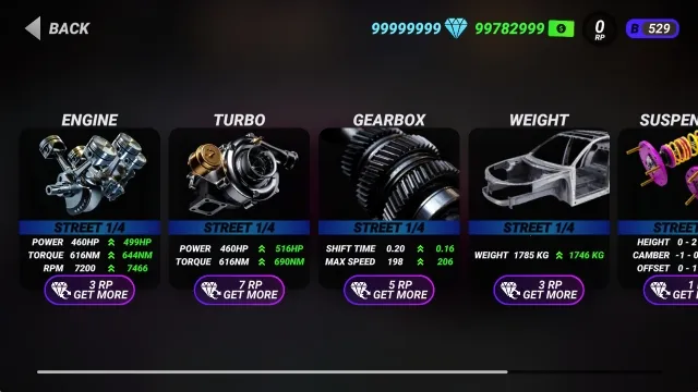 汽车改装也很有趣,能在车库选喜欢的车购买,然后点击TUNING更换喷漆、调整部件细节或升级配件。其特色还体现在很多方面,比如赛车类制动器碰撞测试有困难挑战,真实赛道模拟带来趣味冒险;细腻线条带来愉悦驾驶体验还有诸多奖励;能选择酷炫赛车手加速,有超多冒险世界等。亮点也不少,比赛中能收集赏金,利用改装系统提升车辆属性;沥青路面平整,漂移易控制,易击败对手赢奖励;利用真实驾驶系统诠释驾驶极限,完成挑战性任务得更高评价展现技术。总之,是一款值得一玩的赛车游戏。